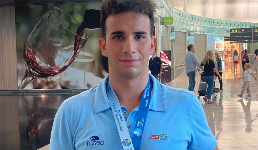Luca de la Cruz se cuelga la medalla de bronce en el Campeonato del Mundo Juvenil con la selección española.
